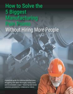 Cobots are reshaping manufacturing and production by tackling today’s biggest challenges. From rising labor costs to increasing safety requirements, cobots empower businesses to boost productivity, improve workplace safety, and streamline efficiency—helping you achieve more with fewer resources.